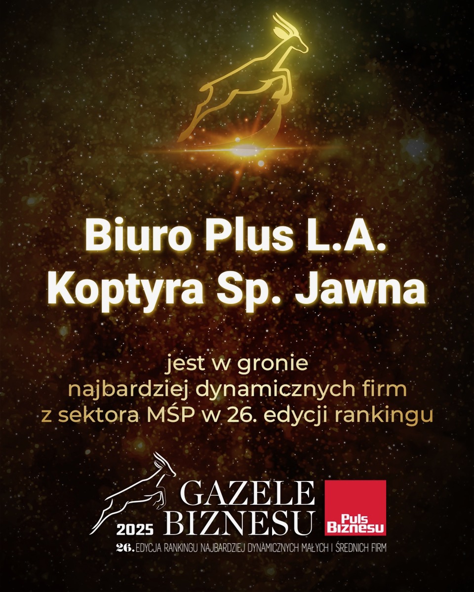 Miło jest nam poinformować, iż po raz kolejny Biuro Plus Stalowa Wola znalazło się w gronie firm z sektora MŚP, które otrzymały Gazelę Biznesu 2025